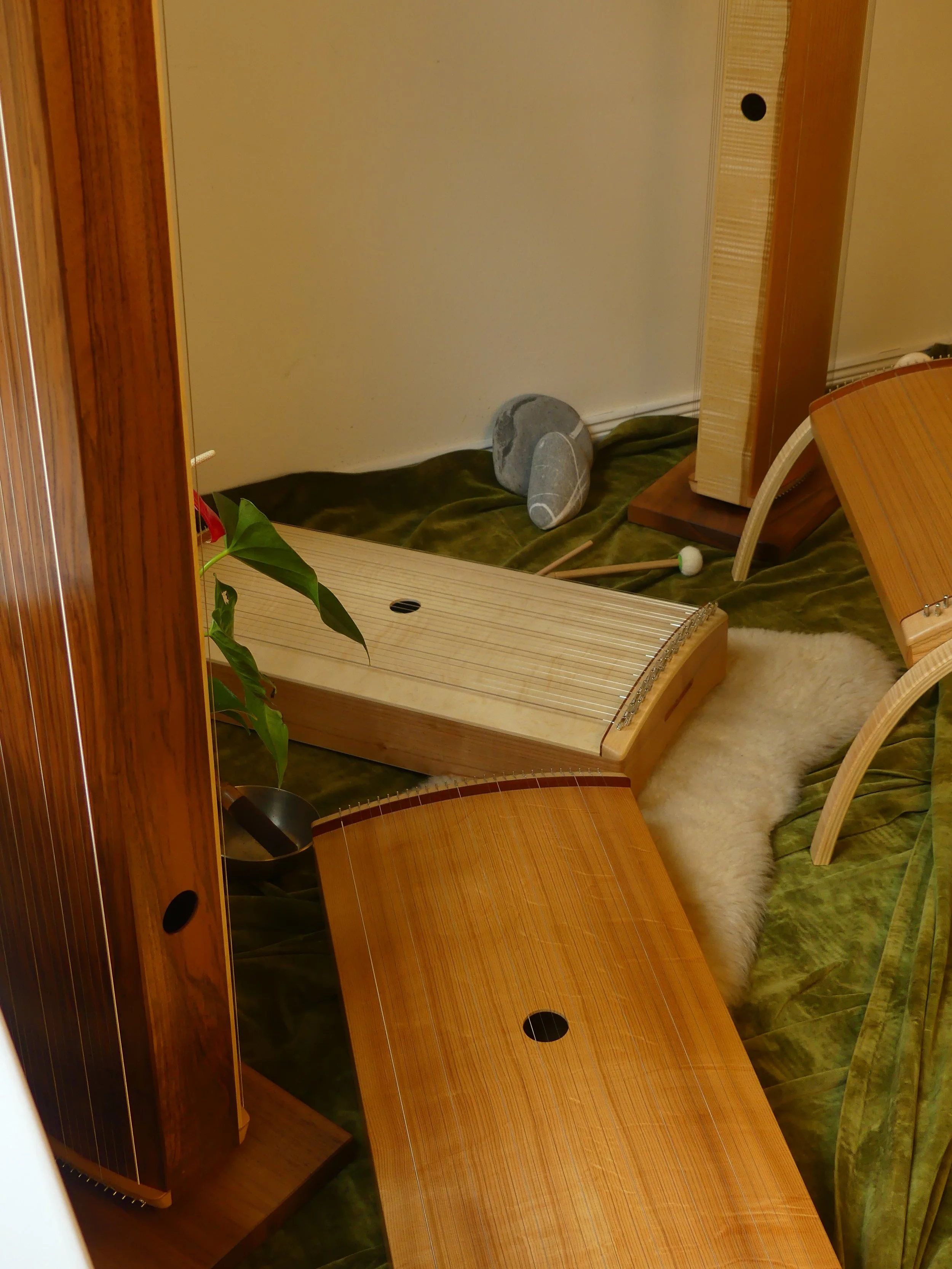 Schon das sanfte Streichen mit den Fingerkuppen bringt einen obertonreichen Klangteppich hervor – getragen von der Resonanz der vielen gleich gestimmten Saiten, die gemeinsam zu schwingen beginnen.