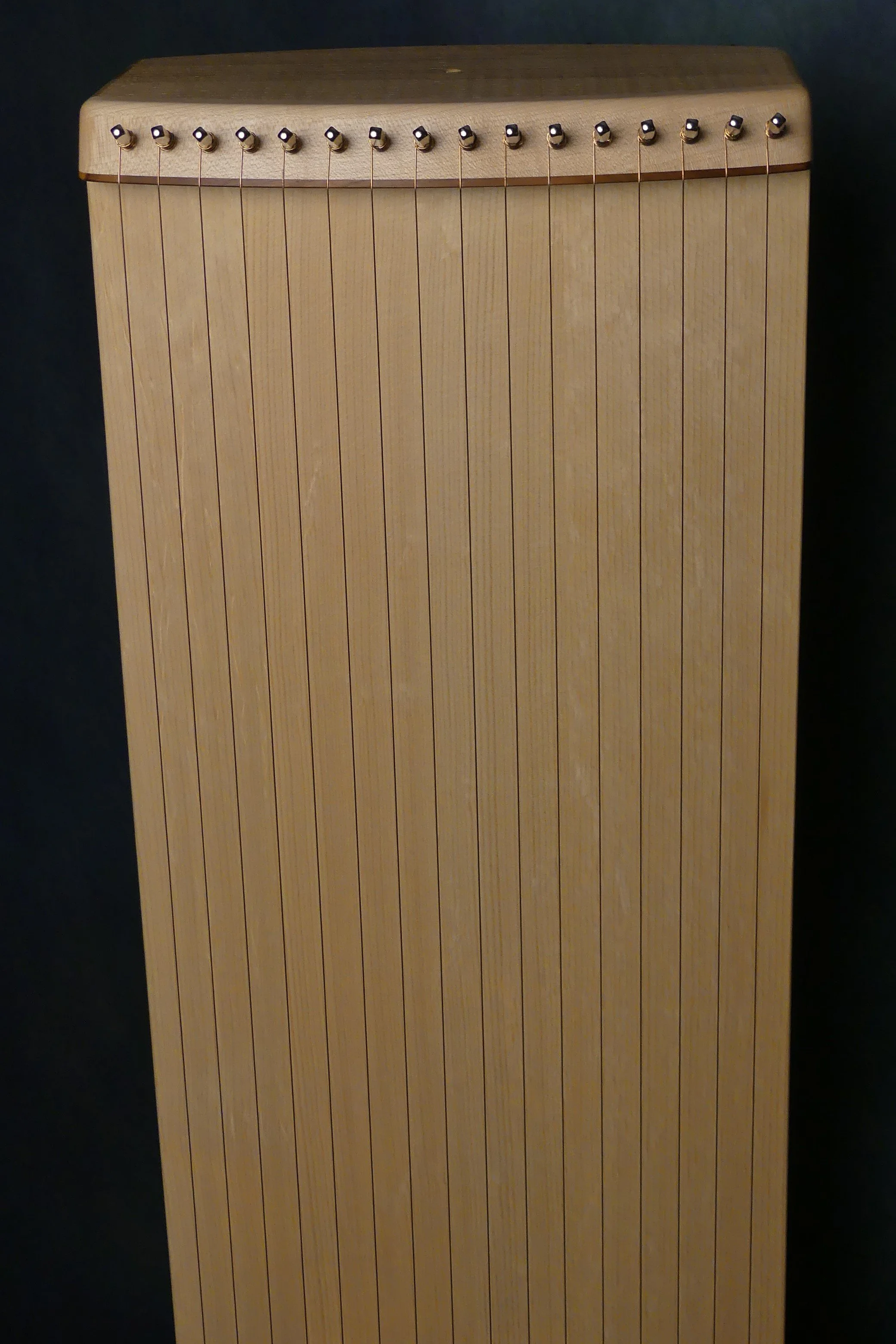 28 Saiten a – d’ – d’ – d (D) bzw. gis – cis’ – cis’ – cis (Cis) oder Besaitung als Körpermonochord auf d/‘ cis‘.